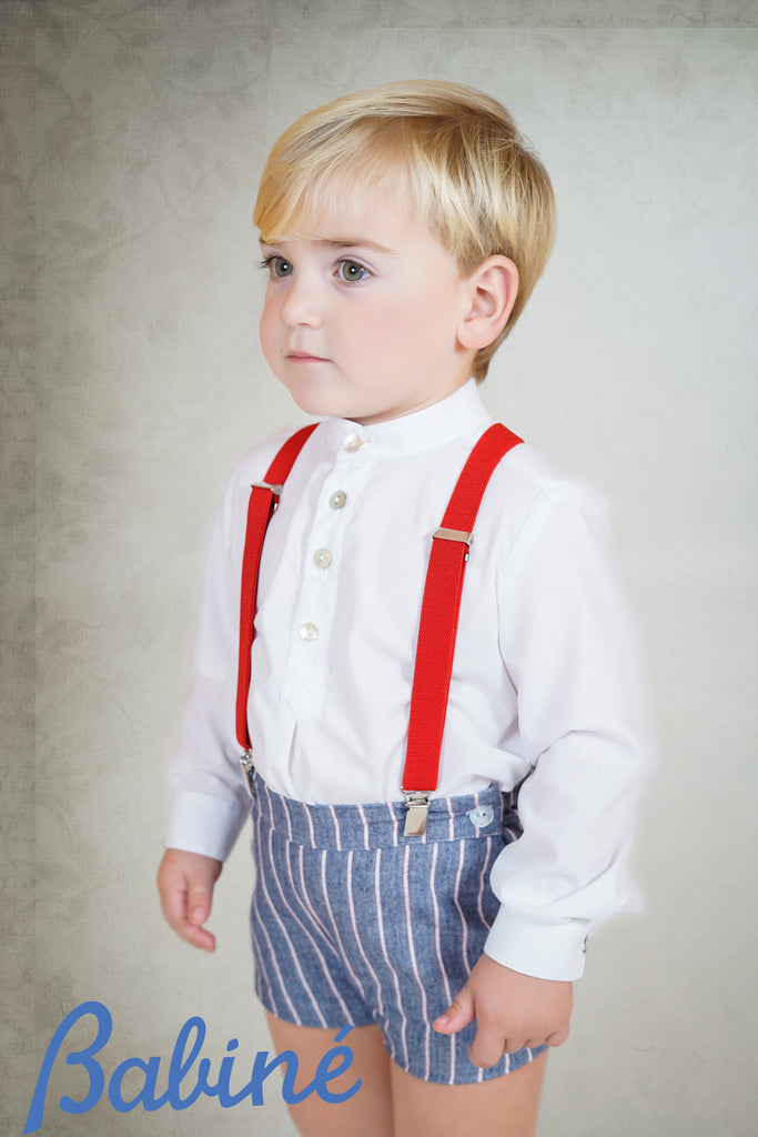 A classic boys’ set from the BABINE AW25/26 collection, featuring a crisp white cotton shirt paired with tailored striped shorts. Simple, elegant, and perfect for both casual outings and special occasions. This outfit also comes with a matching girls’ set for a coordinated sibling look.