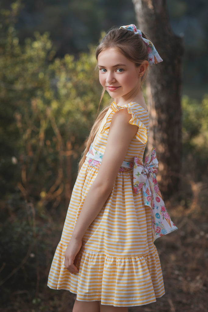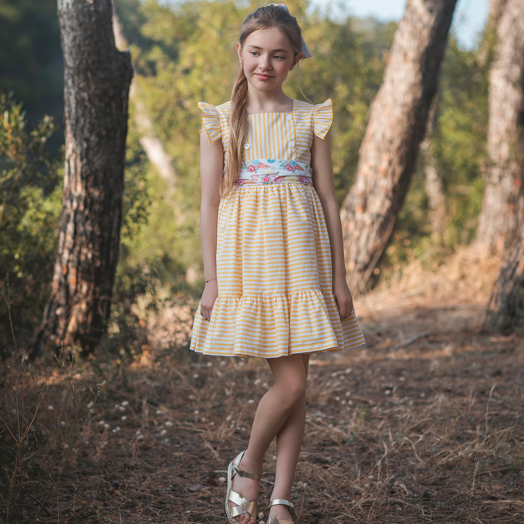 A fresh and charming design from Rochy’s Spring Summer 2026 collection, featuring soft pastel stripes and delicate embroidery that capture the lightness of the season. Perfect for sunny days, garden gatherings, and elegant summer moments.